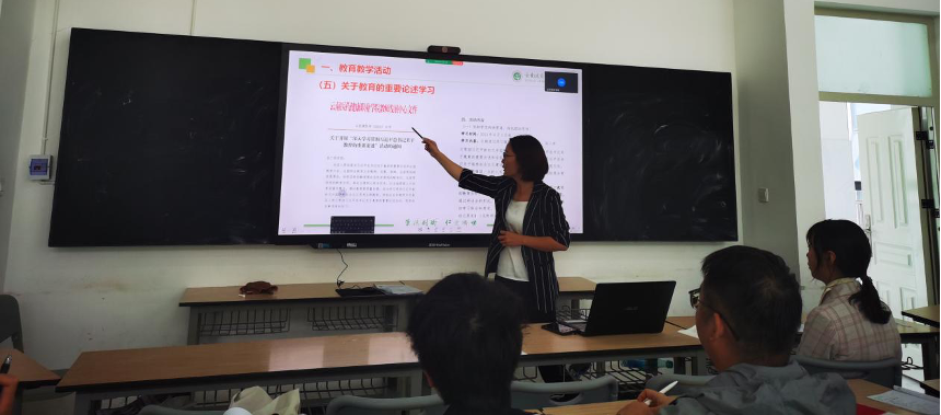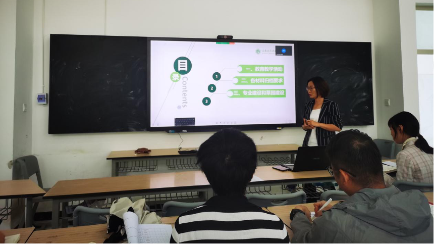 会议第一项,商瑞老师重点围绕新学期五大教学活动进行了安排部署。一是教研室集体备课,由教研室主任牵头组织,每周进行一次集体备课;二是公开课、示范课,要求通过全员听课,新任教师汇报课,优秀教师示范课等常规教研活动,同伴互学,教学相长,共同提高。新教师严格执行传帮带制度,做好青年教师成长手册记录;三是教研教改活动,根据专业特色或教学课程特色,提出教研教改主题;四是结合每位老师所教授课程共分为四个小组,以课程组为单位每组进行集体备课并做好备课记录;五是关于习近平总书记重要论述学习的安排,要求以个人为单位,每周进行一次相关论述文章领读和学习,并做好专题学习研讨会记录。