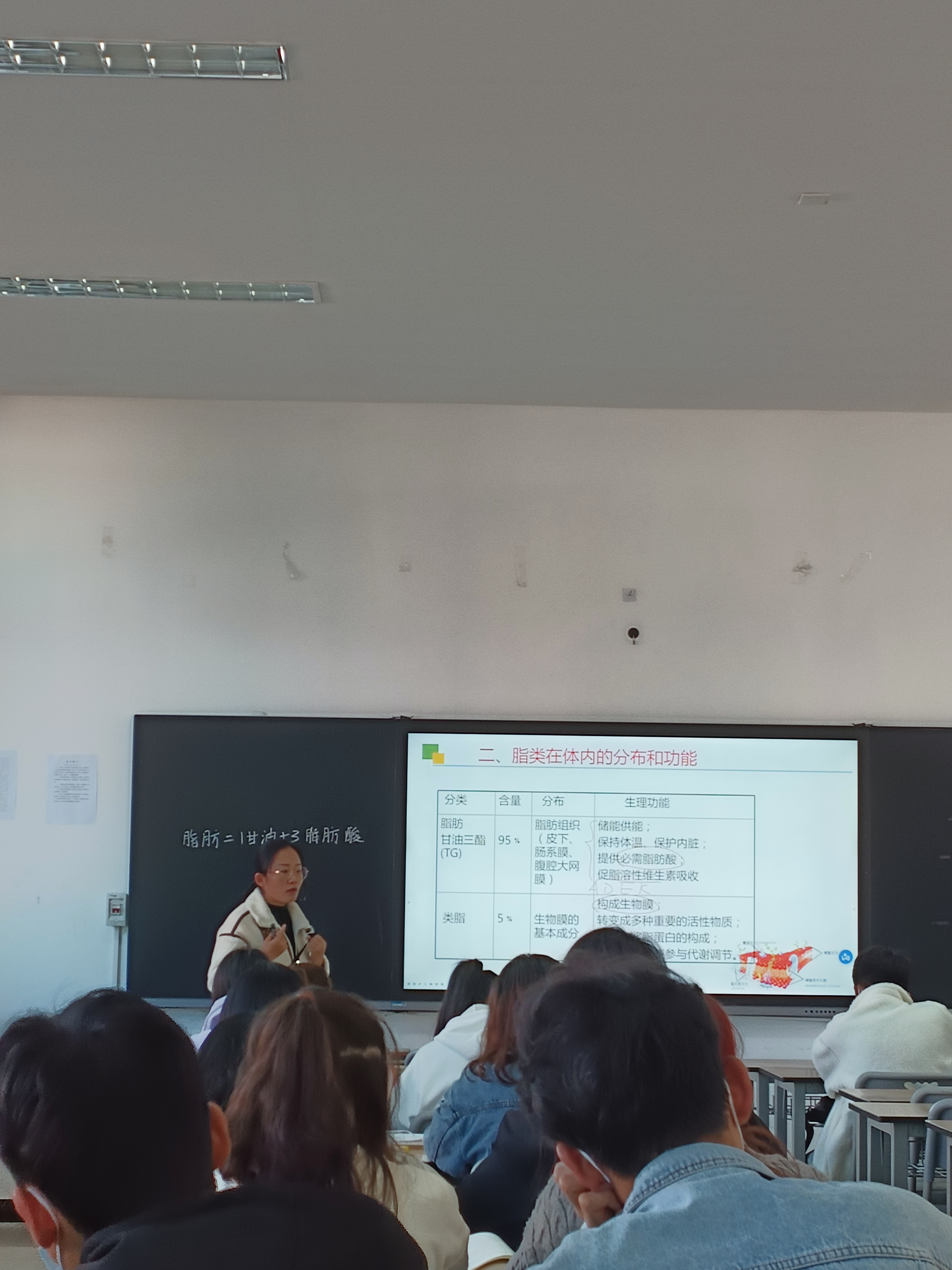 12月2日1-2节课,基础与药学院教师赵映娟于理工校区二教403进行《生物化学》公开课,授课班级为20级五年制药学4班。授课内容主要是脂质代谢的相关内容。